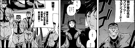 そもそも海が舞台なんだから、サルベージみたいなことをやらせようと思ったのがきっかけだったんですよね。でもUボート編は、いろんな意味でターニングポイントでした。リアルでは、まずこのシリーズの第1話を描いている時点で、進行をめぐって担当さんと大喧嘩したという(笑)。今思えば、この頃はまだ不真面目な態度をしていたんでしょうね。どうせすぐクビになると思ってたし。もちろん今は真面目にやってますよ! みなさん、誤解していませんよね(笑)。内容では、レヴィがロックに喧嘩を売っちゃってどうしようという。でも、ここで喧嘩しないとキャラとして嘘なんですよ。この頃はキャラの制御がまったくできなかったんですよ。だからいつも続きをどうしよう?って。それにしてもブリッツさんは本当に良いキャラでしたね。本当に惜しい。デカイ銃を自慢したと思ったら、速攻死ぬという(笑)。でもひょっとしたら、「これは銃のウンチク漫画じゃないから、そのつもりで読んでね」という自分としての意思表明だったのかも。単にアクションだけというわけでもなくて、自分の作家としての姿勢とか、キャラの性格なんかが剥き出しになったシリーズだったかもしれません。そういう意味でもターニングポイントの回でしたね。(広江氏)